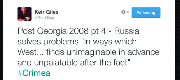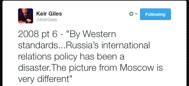 Jag fick precis ett dokument skickat till mig av Keir Giles, direktör för Conflict Studies Research Centre, associate fellow vid Chatham House och ledande expert på rysk cybersäkerhet. Dokumentet är en analys efter Georgien-kriget som Advanced Research and Assessment Group vid UK:s Defence Academy gjorde.
