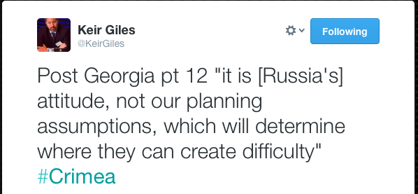 I den finns flera bedömningar om framtida synen på Ryssland från ett närmast ryskt perspektiv snarare är mirror-imaging från Väst. Nu när vår försvarsberedningen går in i en ny slutfas kan dessa slutsatser vara väl värda att fundera på och hur de senaste dagarnas händelser i Krim kan ha påverkat Rysslands syn på omvärlden och kanske hjälpa till att uppdatera synen på Ryssland.
