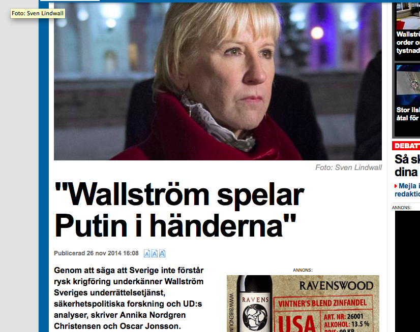 Idag skriver jag tillsammans med Annika Nordgren Christensen på Expressen Debatt angående ovannämnda teman. Artikeln kom efter att utrikesministern hade sagt att ingen hon talat med lyckats förklara Putins agerande och att han är irrationell (se här). Det håller helt enkelt inte är våran bestämda med ödmjuka mening. Titelsättningen är dock inte vår. God läsning! Screen Shot 2014-11-26 at 16.48.55